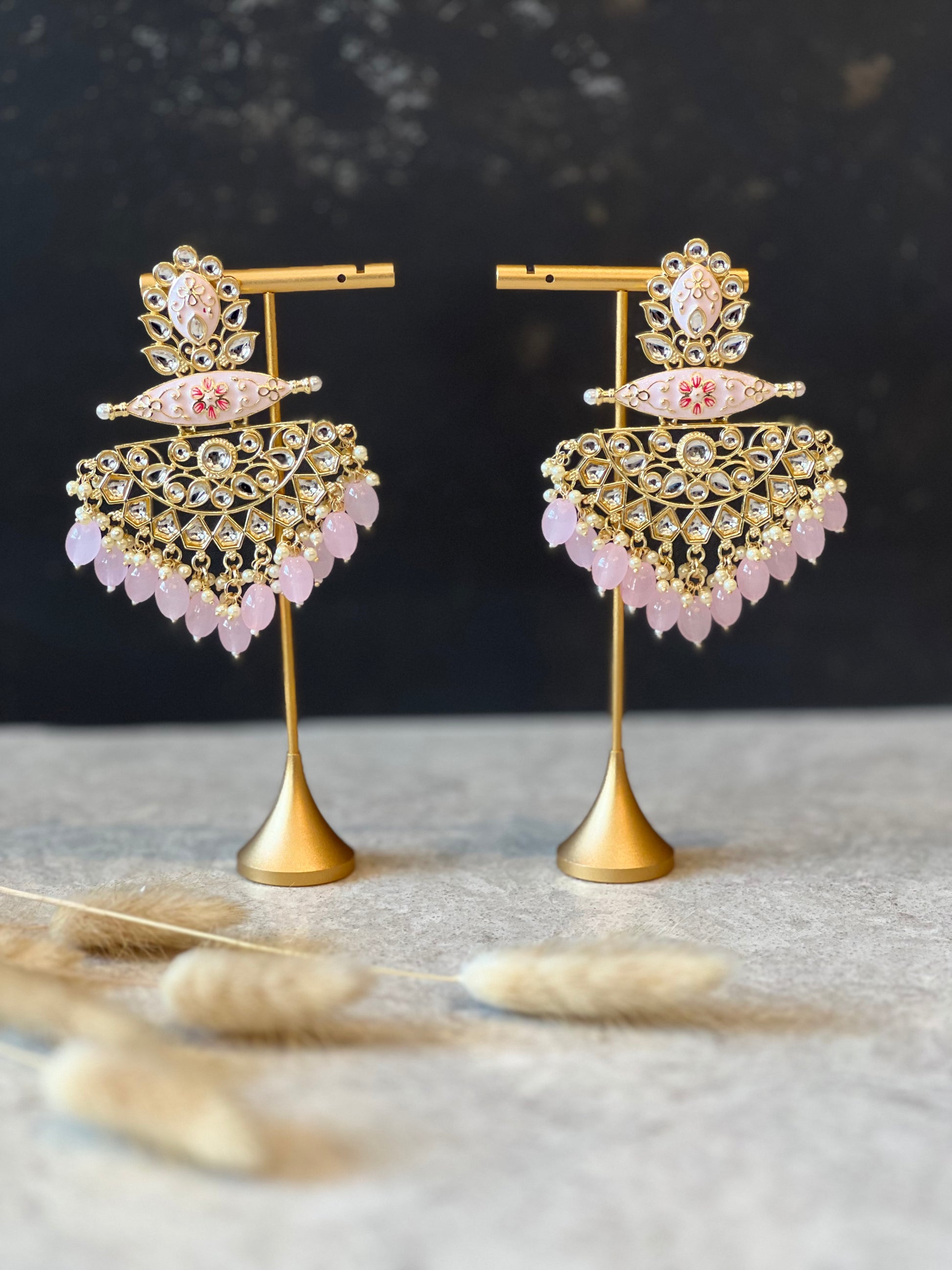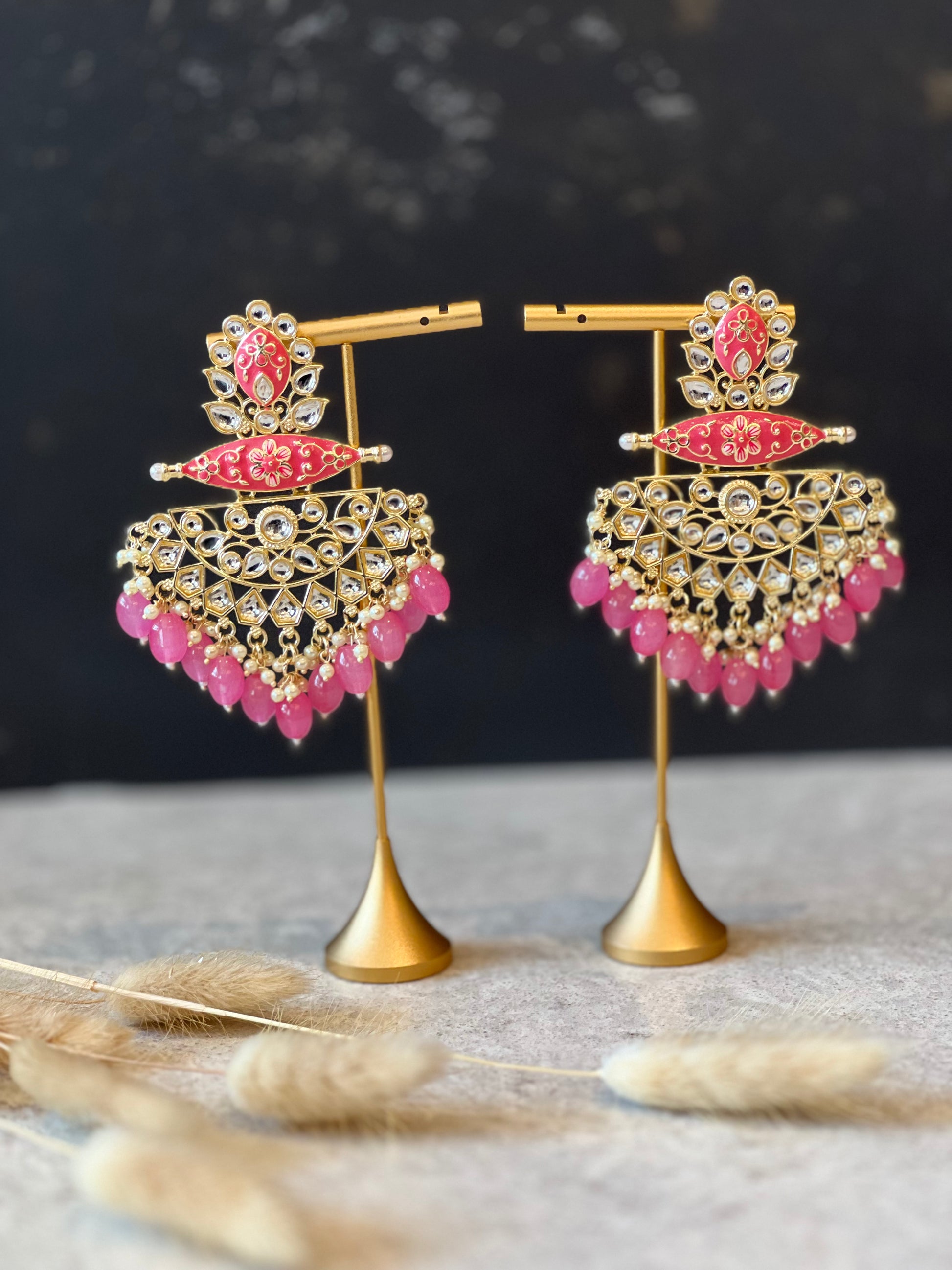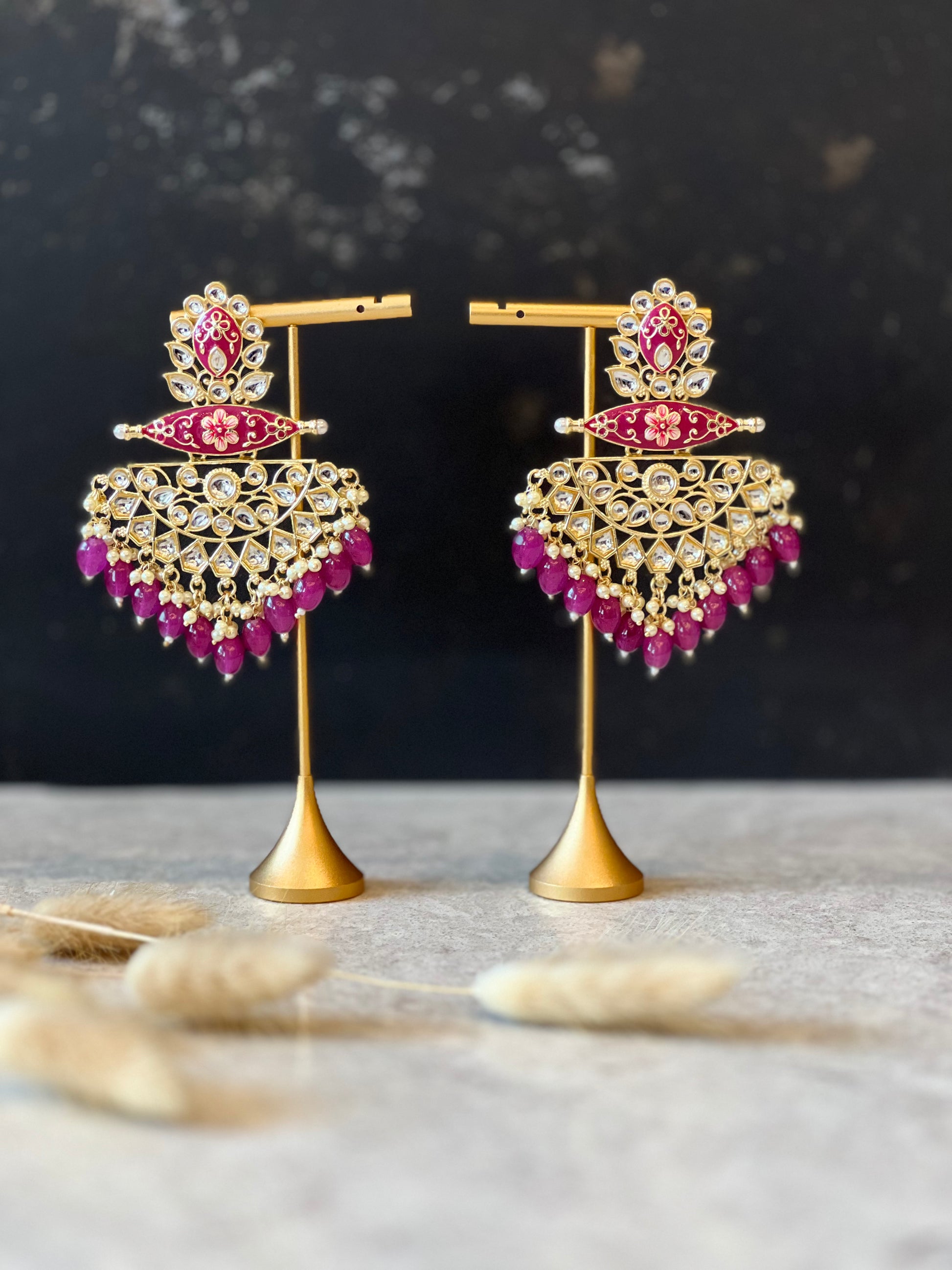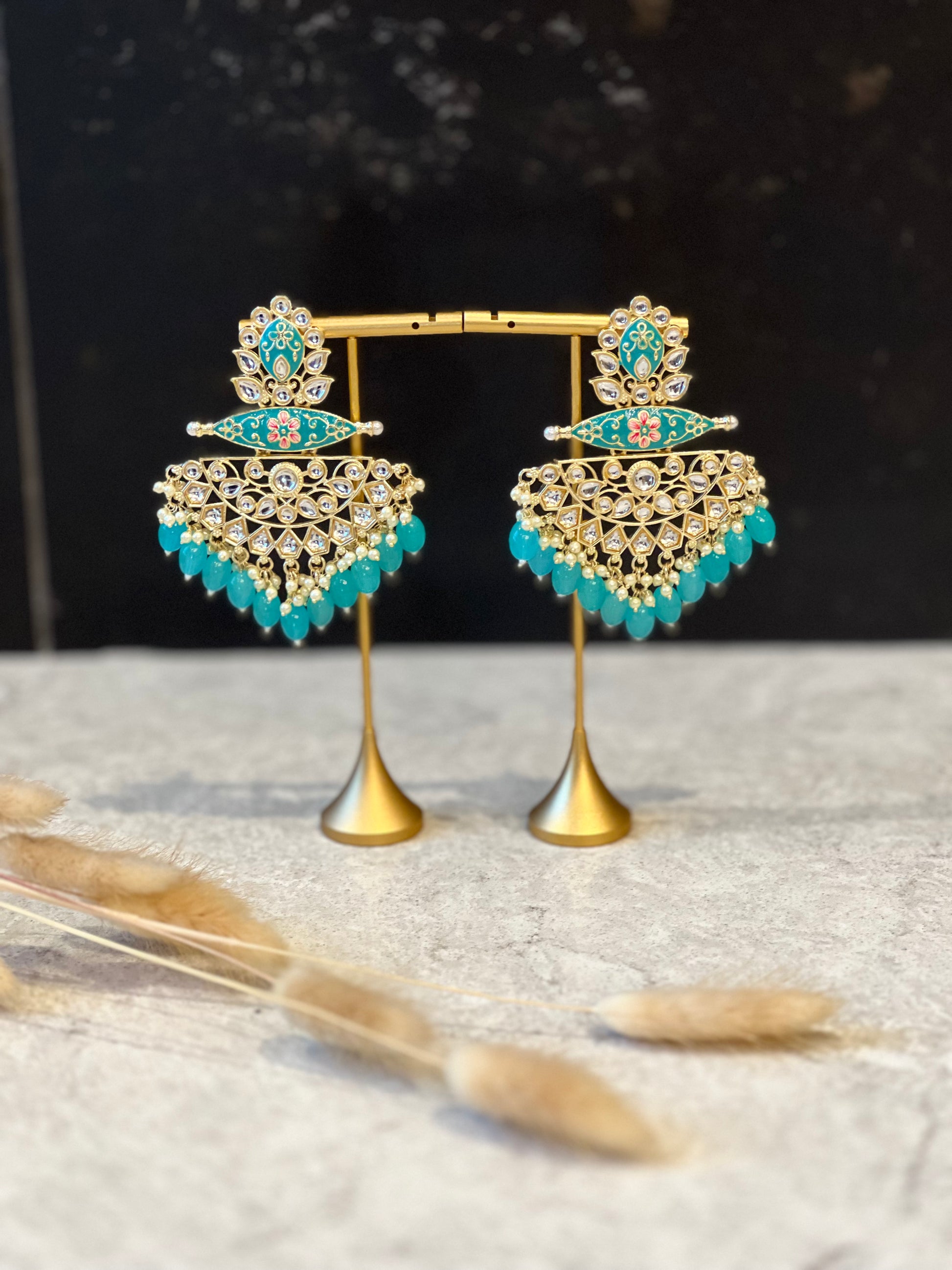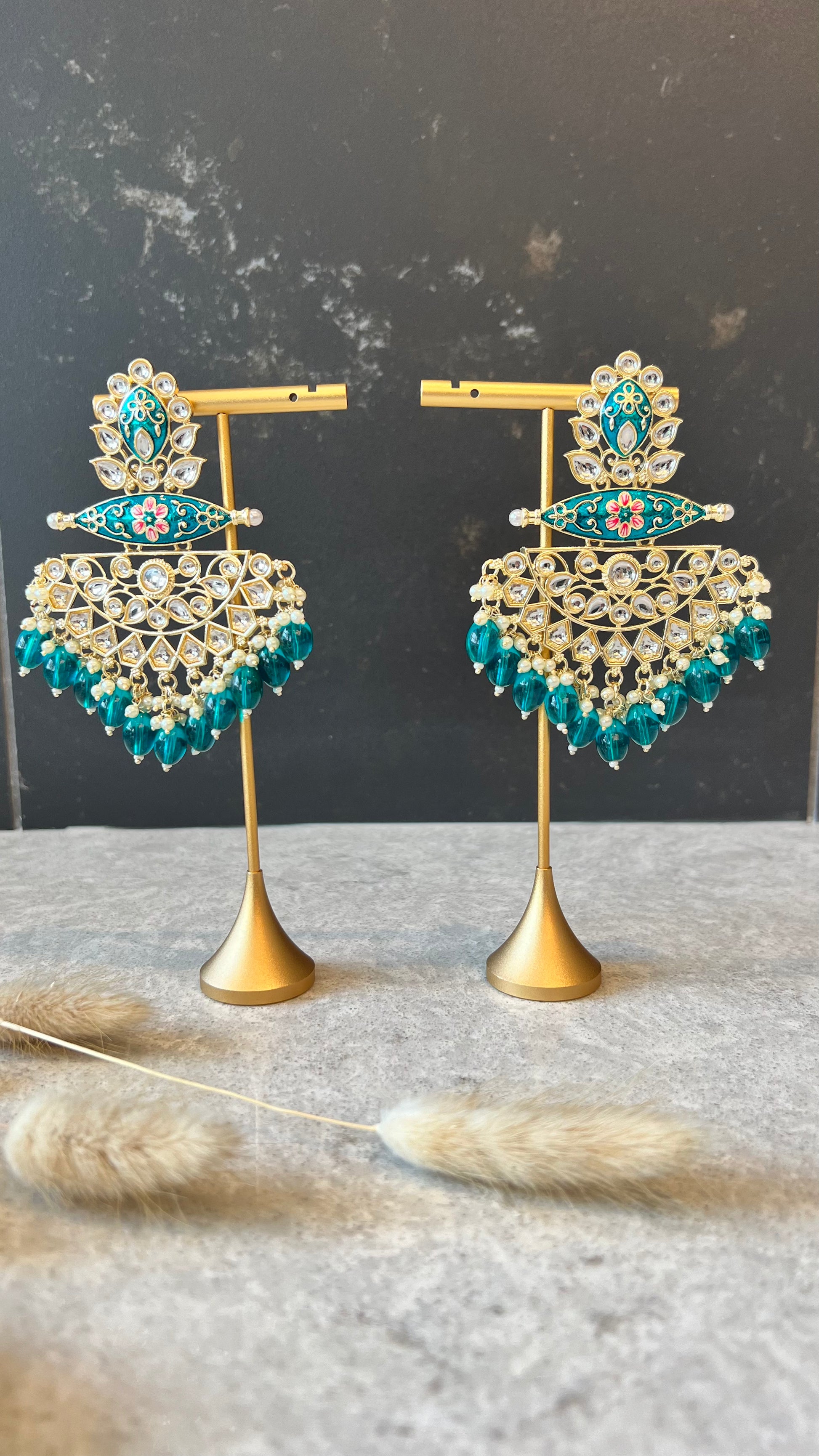 The Amarah Earrings are an exquisite blend of traditional craftsmanship and modern design. Featuring a kundan-encrusted square stud, these jhumka-style earrings are adorned with beads and pearls, adding a feminine charm. The 3.8 inch drop makes these earrings perfect for weddings, engagements, or special events, offering an elegant and sophisticated look.