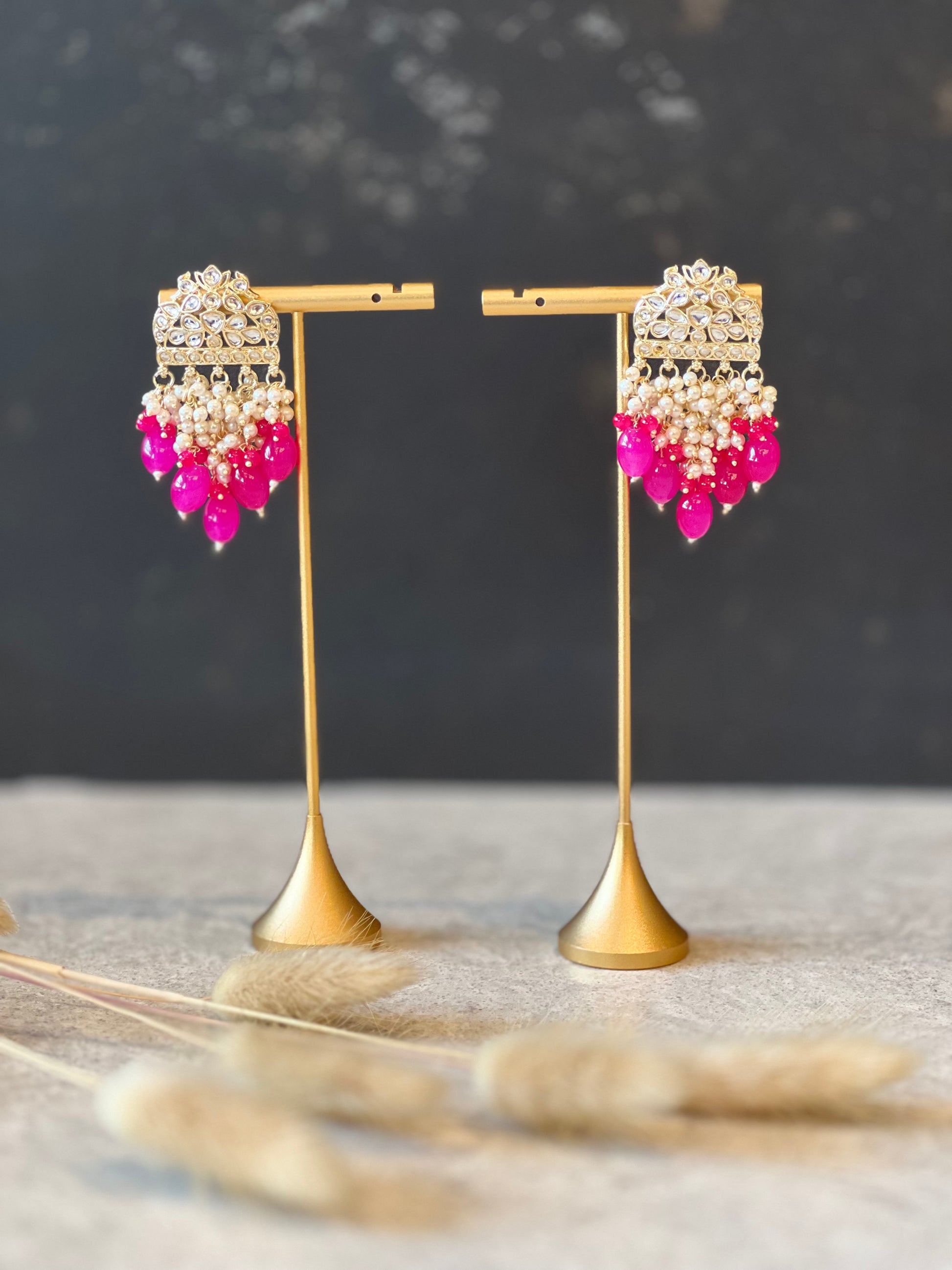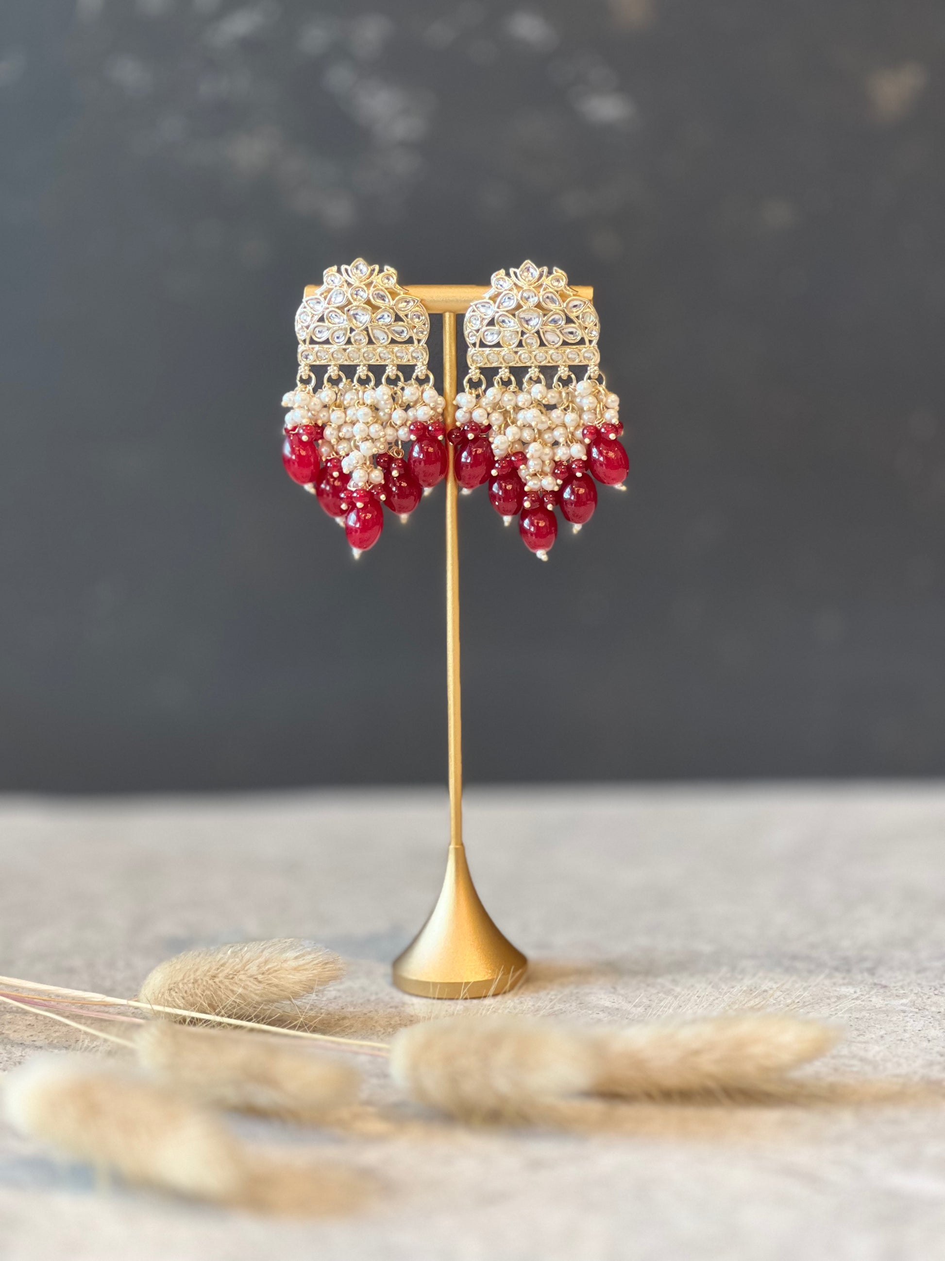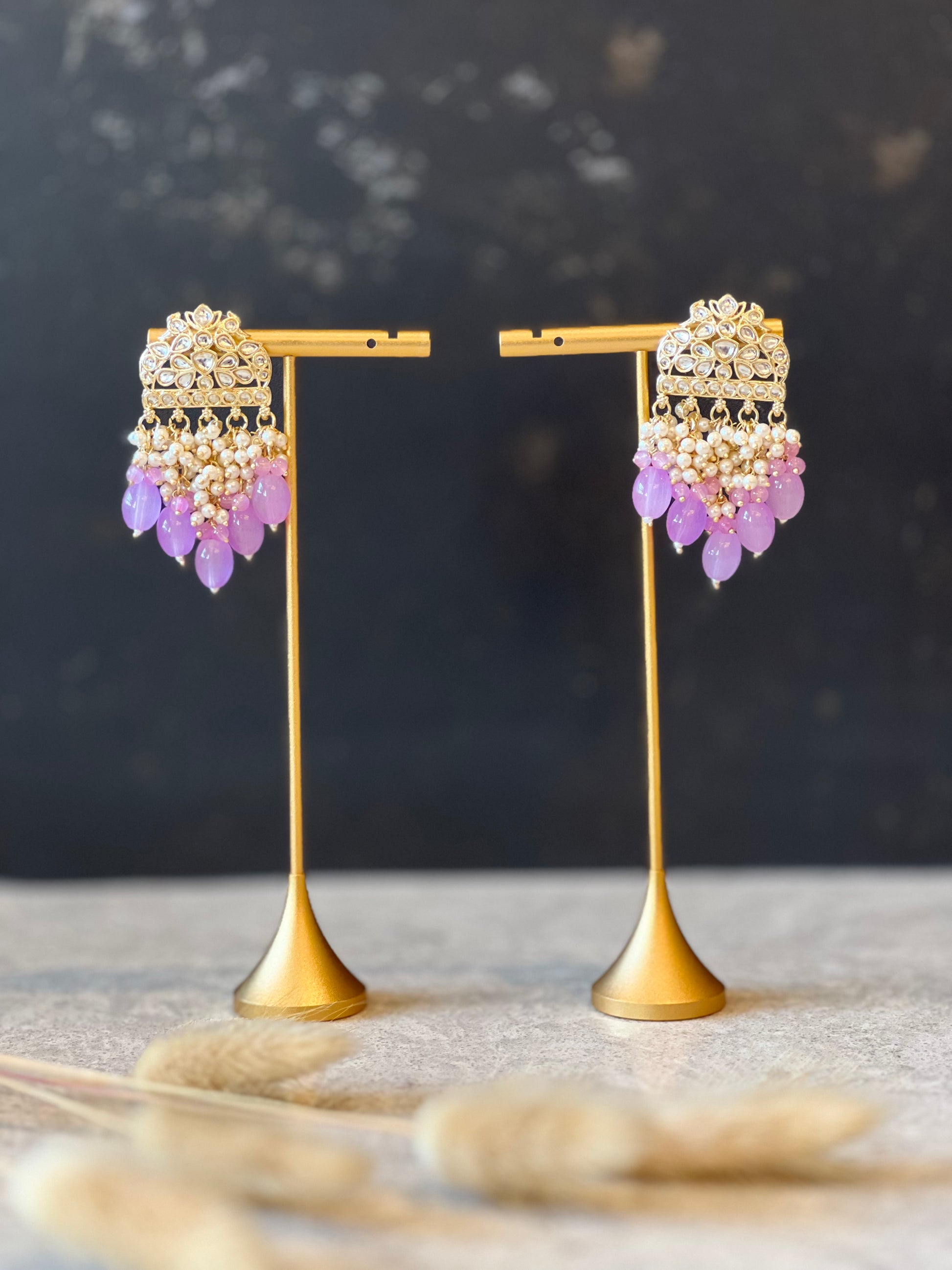 The Fayrah Earrings are designed to capture attention with their stunning mix of kundan stones and delicate detailing. Featuring a round kundan-studded top with a cascading chandelier design, these earrings are further embellished with pearls. Measuring about 2.3 inches, they are ideal for festive occasions or party wear, adding a touch of regal elegance to any outfit.