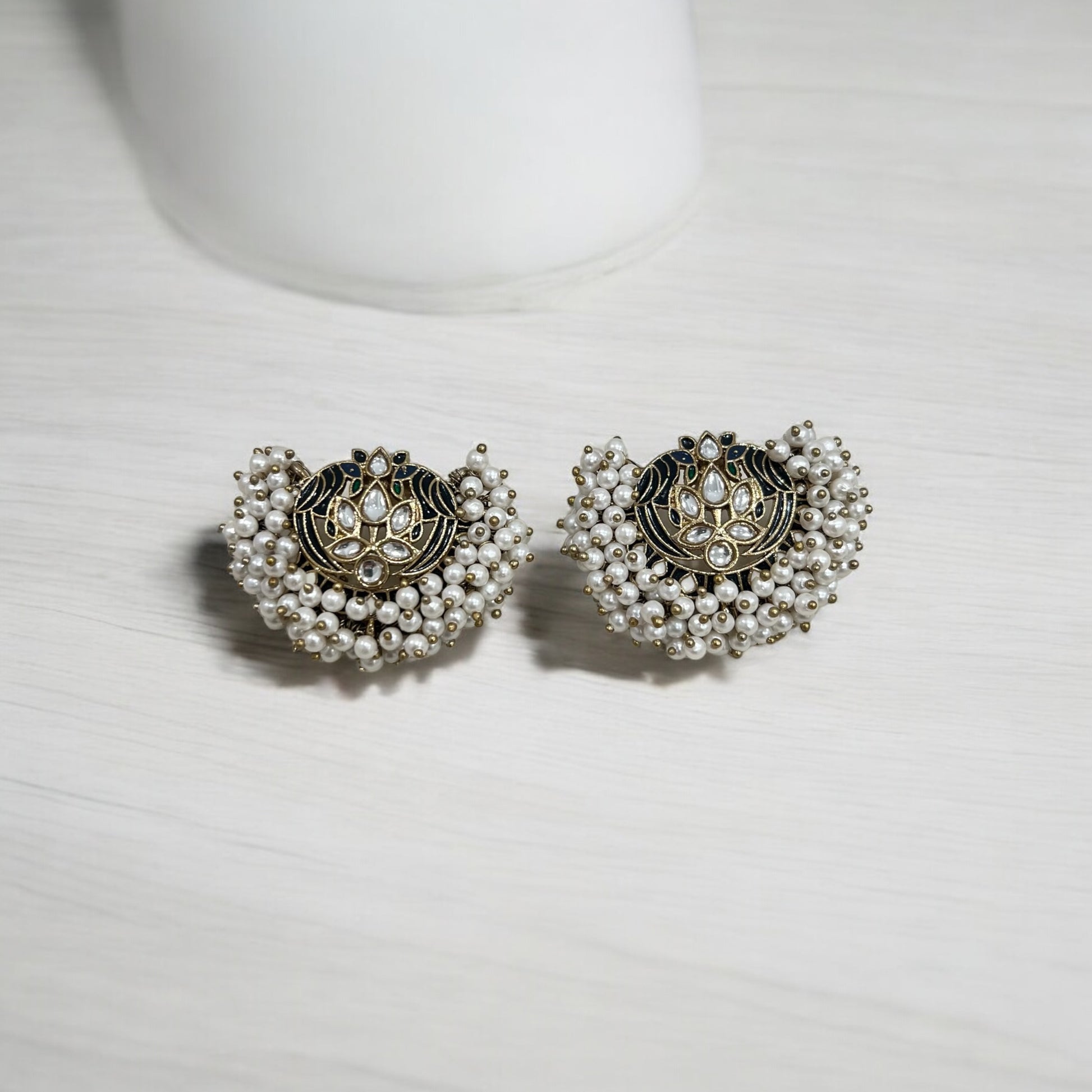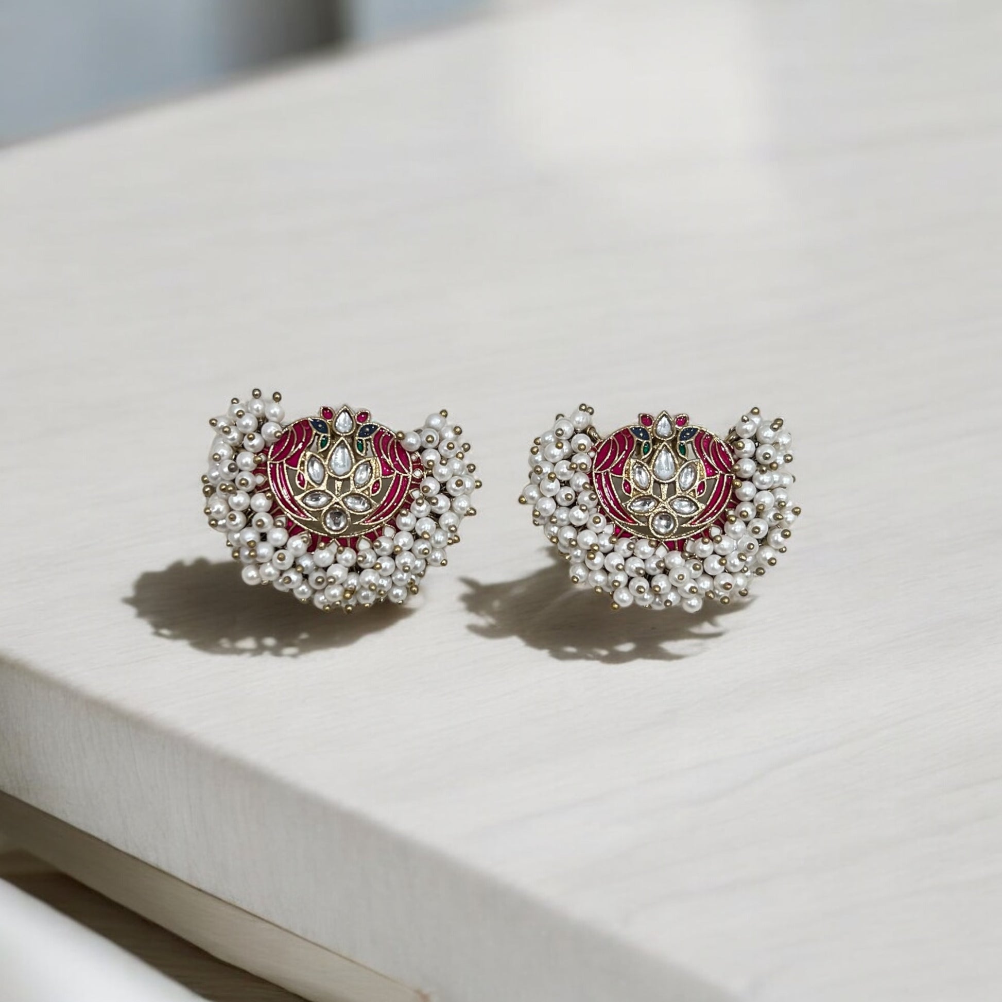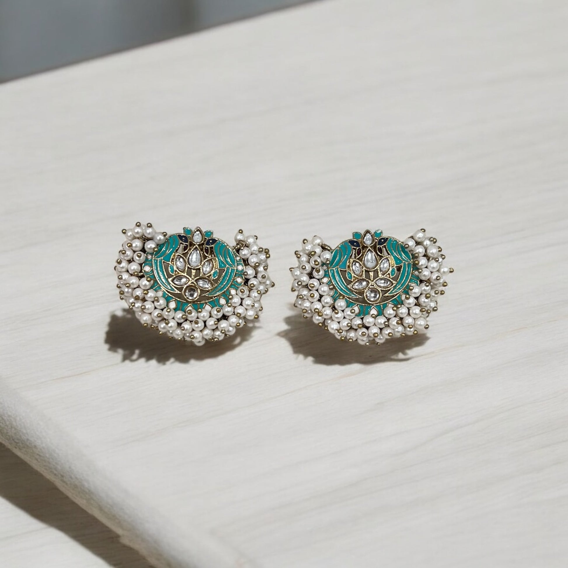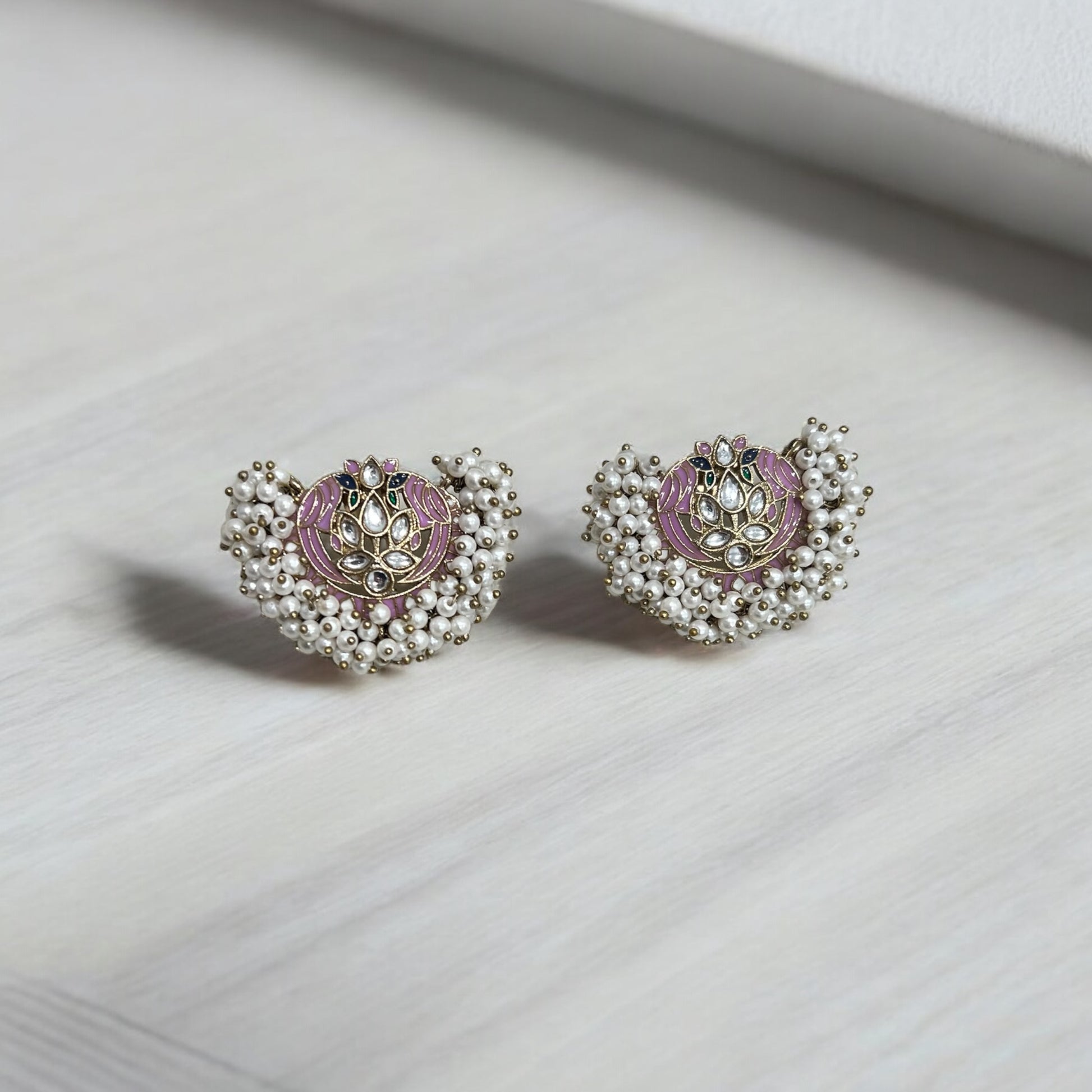 The Meher Earrings feature a breathtaking design with their gold-plated metalwork and bead accents. These chandelier-style earrings have an intricate kundan setting at the top, with meenakari detailing and cascading layers of pearls and beads that add a feminine touch. These earrings are ideal for any occasions where you want to add a soft yet luxurious touch to your ensemble. The delicate color and craftsmanship make them a versatile addition to any jewelry collection.